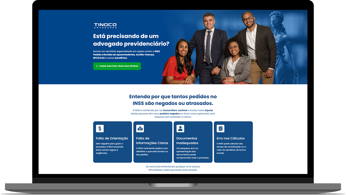 Além de criar Websites Institucionais e Landing Pages Estratégicas, também gerenciamos campanhas de tráfego pago para advogados, garantindo que seu escritório seja encontrado por quem realmente precisa dos seus serviços.